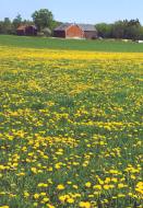 Bussen stannar vid Löberöds torg. Vid mitt förra besök i januari blev jag välkomnad av duggregn. Idag är det en vacker försommardag. En mor svalkar sin son i fontänen mitt på torget. Jag söker mig till leden, som går österut på en cykelstig ut ur samhället. Utanför samhället gå rman på resterna av banvallen av den sedan länge nedlagda järnvägen Eslöv - Löberöd - Bjärsjölagård - Sjöbo. På ömse sidor om banvallen är det åkermark. Vid landsvägen mot Harlösa tar man höger, och kommer efter en kort sträcka fram till danspalatset Granbacken. Här blir jag konfunderad. Min karta säger att man ska gå runt Granbacken, i verkligheten finns det några knappt synliga markeringar in mot skogen söder om Granbacken. I det militära sades det att om kartan och verkligheten inte stämmer överens så gäller kartan. Jag följer kartan och går runt om, tar in på grusvägen söder om skogen. En glada bevakar mina förehavanden. Kartan hade fel, en pil där leden viker söderut visar att den går genom skogen till Granbacken. En bonde kommer gående på vägen. Han har en imponerande maskrosäng. Bra för både ko och människa. Han ska nu släppa ut korna till bete, efter att själv ha försett sig. Vi har en lång diskussion om maskrosvinets förträfflighet. Jag fortsätter min vandring, vägen övergår till en traktorväg vid åkerkanten. En fasan far skrämd iväg, lika skrämd blir jag. På en liten äng står tre stolar till synes utan anledning. En ligger på rygg. De verkar vara inbegripna i en intern uppgörelse. Skyndar förbi, för att slippa bli inblandad, fram till landsvägen till Harlösa. Efter en kilometer på landsvägen tar man in på grusvägen mot Askeröd. Lärkan ryttlar ovanför mitt huvud och sjunger för mig. En tupp galer tre gånger. Vid och genom gården Romhult följer man en traktorväg söderut, fram till en mindre skog. I södra delen, öster om vägen, hittar jag lägerplatsen Höghult. Här finns en pump, först kommer en brun sörja, efter hand klarnar vattnet. Smakar rätt bra. Någon har nyligen slagit gräset. I närheten växer några askar, de håller på att veckla ut sina blad. Våren är på väg att gå över i sommar. Vägen mynnar vid en grusväg, som man strax lämnar för en stig ner till gångbron över bäcken vid Rävekärr. Även här har gräset slagits. Stigen följer kanten av en granskog, innan man kommer in i en bokskog. I en glänta står några bikupor. Det enda liv jag ser är en humla. Efter skogen är man i Hjularöd, sagoslottet med tinnar och torn. Det byggdes i slutet av 1800-talet, med de franska medeltidsborgarna som förebild. På min karta är det markerat att det finns en affär i Hjularöd. Den jag känner till har numera upphört. Affären hade samma ägare i minst sextio år, och ingenting slängdes bort. Allt sparades. Mycket intressant kunde hittas där, bl.a. kaffesurrogat från andra världskriget. Från Hjularöd följer man en grusväg fram till en stig i en bokskog. Stigen leder en till en inhägnad med stätta. Först tror jag att man ska klättra över, men en stunds letande efter markeringarna visar att man följer stängslet österut över en bäck. Även här har gräset på "stigen" slagits. Där man passerar vägen till Harlösa finns en vacker valvbro. Här hade jag tänkt ta en kaffepaus, men det är ett förfärligt oväsen. Man håller på att slå gräset. Inte med lie, utan med motorkraft. Förr om åren har det klagats på att leden växt igen med brännässlor. Idag är den just här vackert bevuxen med maskrosor. Fortsätter utan kaffe. Fram till Harlösa gård går man i en vacker dalgång. En porlande bäck, maskrosklädda sluttningar, betande hästar och kor. Mellan hagarna finns stättor och stengärdsgårdar. Förra gången jag var här fanns det tjurar i en hage. De inger stor respekt. Jag fick ta en omväg krypande på en igenvuxen stengärdsgård. Idag är det lugnt. Lägger mig på rygg och omfamnas av maskros, mandelblom, tusensköna, smörblom. Några kor tittar undrande och nyfiket. Avlägset hörs en gök. En lång men alltför kort stund passerar. Motvilligt överger jag min bädd, och lämnar dalen för landsvägen fram till Harlösa kyrka. Här har man en bra utsikt över Kävlingeåns dalgång, med Vombsjön i öster. Från kyrkan hörs ett ivrigt kvittrande från hungriga fågelungar. Mitt emot kyrkan är Donationshuset: "fattighuset för Hjularöd och Harlösa säterier". Efter kyrkan leder en stig ner till Harlösa, målet för min vandring idag. En kaffe och glass på Grand Cafe, innan jag söker upp busstationen. För den trötte och hungrige finns här ännu så länge ett trevligt hotel med en bra restaurant. När jag kommer hem slår jag upp ett stort glas med maskrosvin av en god årgång, och NJUTER! |